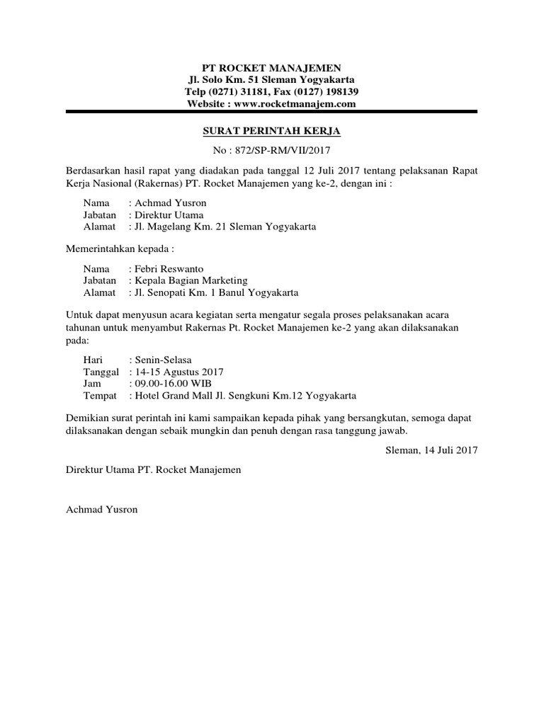Perusahaan a menanggapi surat permohonan kerjasama dengan perusahaan b,. Contoh format instruksi kerja sebuah perusahaan. Berikut contoh untuk surat penugasan dari suatu perusahaan perhotelan.