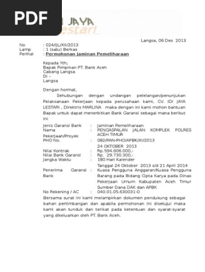 Surat Permohonan Jaminan Pemeliharaan Cv - Idi Jaya Lestari Pdf
