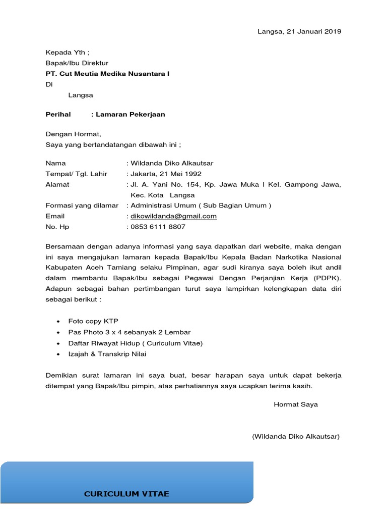 Lamaran Kerja Bnn Bayu Pdf