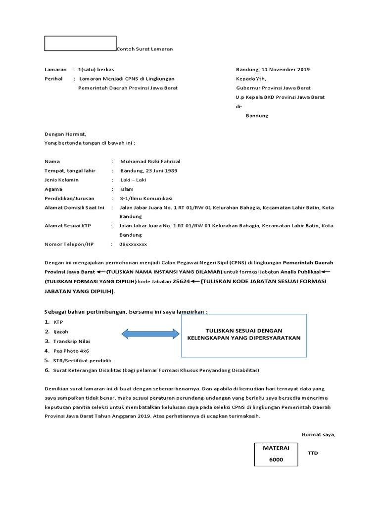 Format Surat Lamaran Cpns Pemprov Jabar 2019 Pdf Pdf