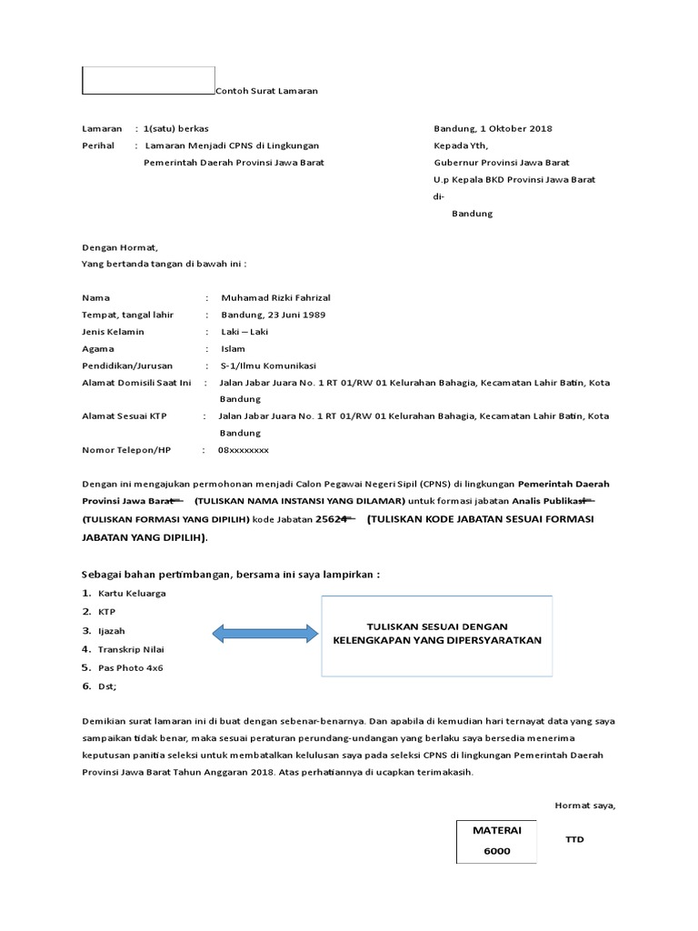 Contoh Surat Lamaran Cpns Provinsi Jawa Barat - Contoh surat lamaran kerja / pekerjaan terbaru di perusahaan, pt bank, fresh graduate, bahasa inggris, cpns, guru, tulis tangan, hotel & Calon pegawai negeri sipil (cpns).