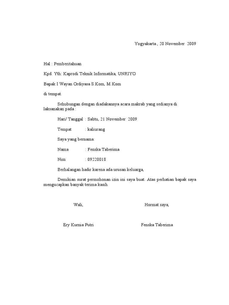 1.4 contoh surat izin tidak masuk kerja karena ada kepentingan dalam bahasa inggris; Baik itu surat yang dipergunakan oleh perusahaan, instansi pemerintahan, lembaga, organisasi, dan perseorangan. Contoh surat izin tidak masuk kuliah beberapa waktu yang telah lalu saya telah berbagi tentang contoh surat izin tidak masuk sekolah dan untuk mengawali pagi ini saya akan kembali membagikan sebuah surat yang hampir sama dengan.