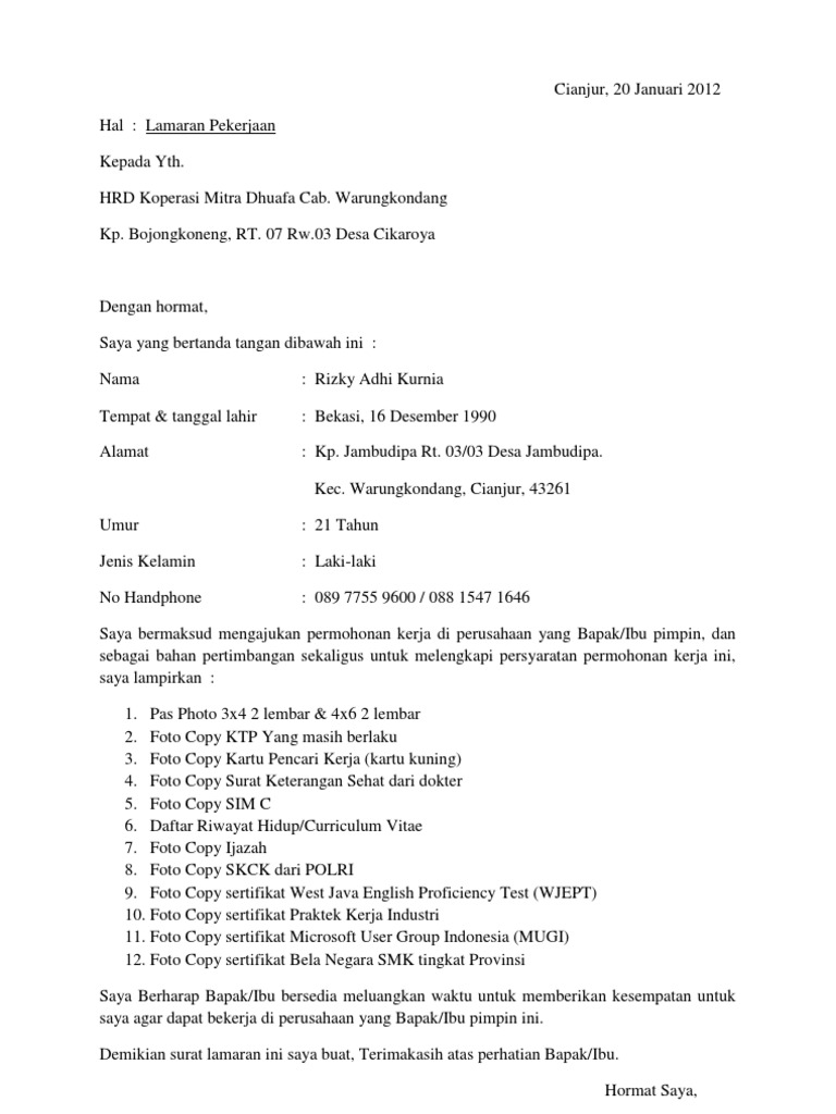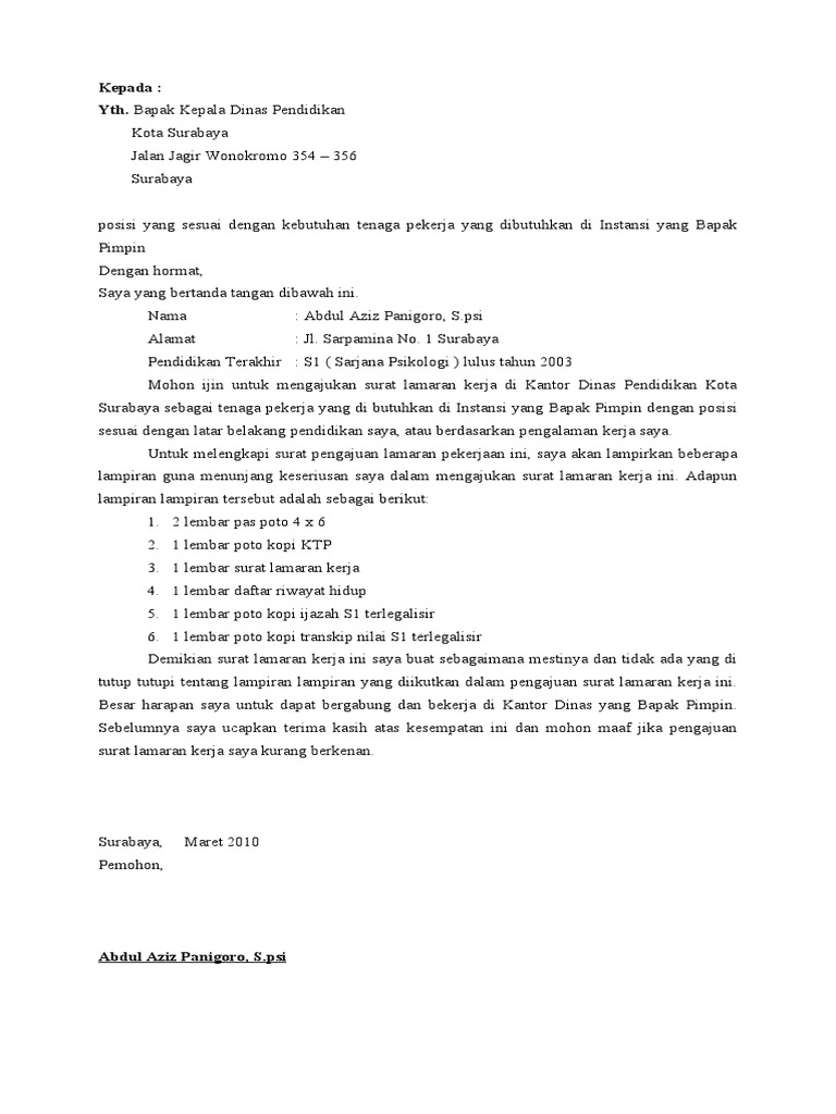 Surat Lamaran Kerja Pdf