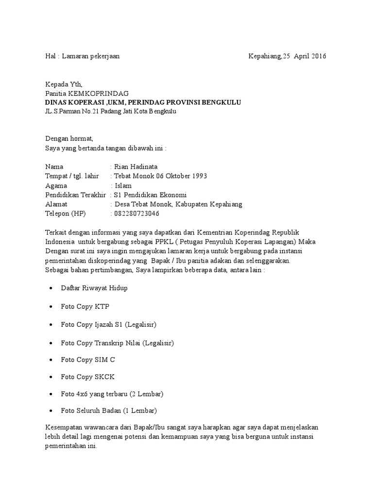 Surat Lamaran Diskoperindag Pdf